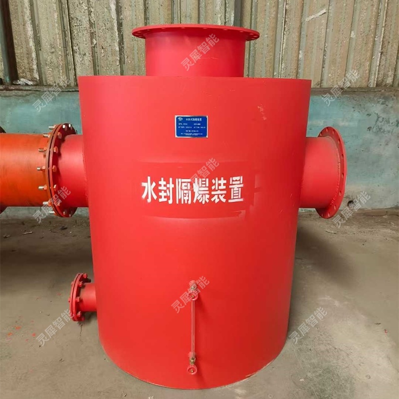 工作原理:水封防爆装置内部有一定高度的水封层。正常情况下,气体可以从水下的通道或管路过水封层。一旦管道内发生回火或爆炸,火焰在试图通过防爆装置时,会遇到水封层。由于水的不可压缩性和隔离作用,火焰的热量会被水吸收,且火焰无法在水中继续传播,从而阻止了爆炸的蔓延。
