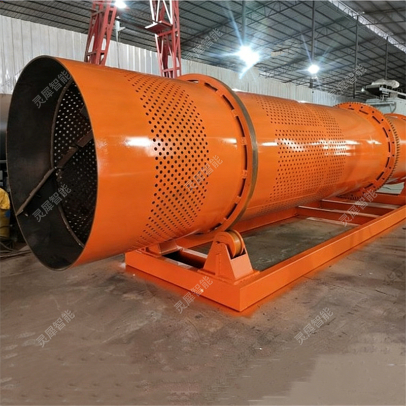 物料在筒内前移过程中,泥团分散、泥粉随水透过筛孔排出;